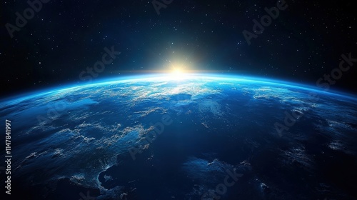 Stunning Earthrise Over Horizon Captured in High Definition, Showcasing Vibrant Colors and Starry Sky, Perfect for Nature and Science Projects