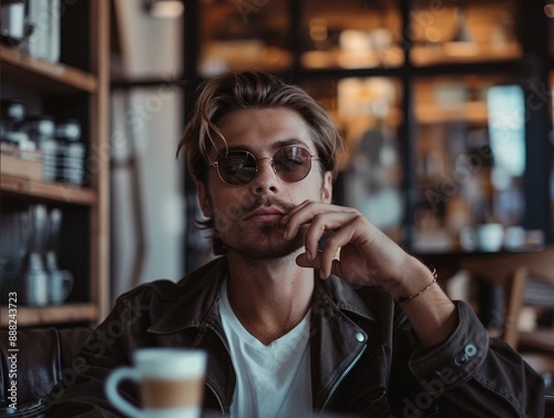 Stunning high resolution photos of a relaxed fashionable man drinking his favorite coffee