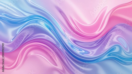 Stunning iridescent liquid waves in soft pastel pink and blue create a luxurious, flowing abstract background perfect for elegant designs