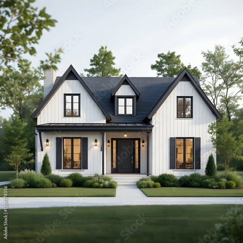 Stunning Modern House Design with Black Accents Surrounded by Lush Greenery and Flora