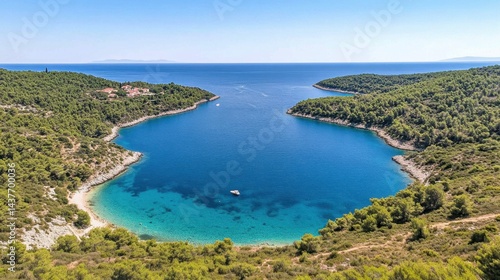 Stunning panoramic view of a tranquil sea surrounded by lush green islands