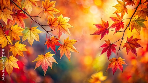 Stunning Panoramic View of Vibrant Autumn Watercolor Leaves on Soft Background, Ideal for Seasonal Decor and Nature Enthusiasts