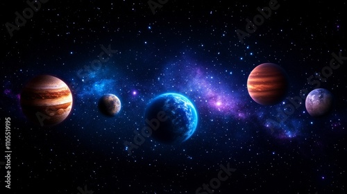 Stunning Planetary Alignment in Deep Space with Vibrant Nebula and Stars