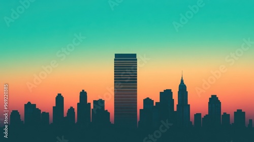 Stunning silhouette of a city skyline at sunset, showcasing distinct buildings against a colorful gradient sky.