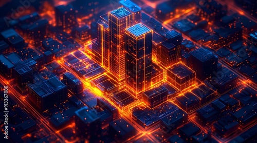 stunning smart building construction, isometric style