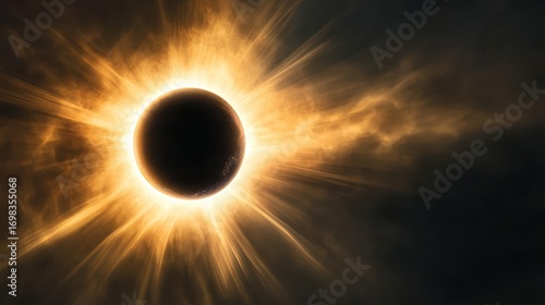 Stunning solar eclipse with glowing corona over dramatic sky, symbolizing cosmic wonder.