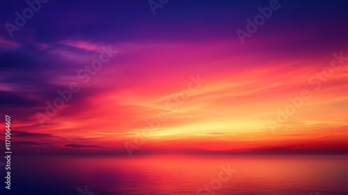 Stunning Sunset Over Calm Water, Displaying Vibrant Hues of Pink, Orange, and Purple, Perfect for Relaxation and Serenity in Nature Photography