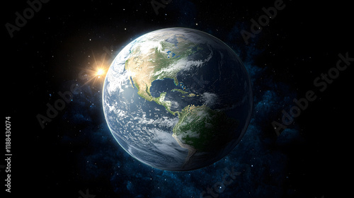 stunning view of Earth from space, showcasing continents and oceans illuminated by sunlight