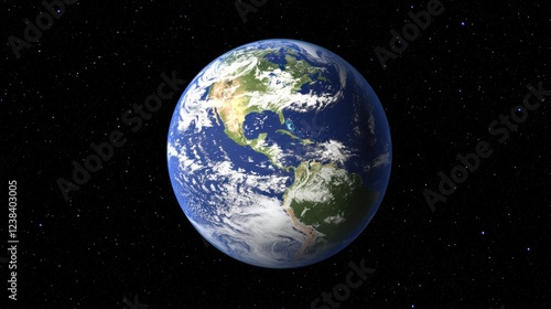 Stunning View of Earth from Space with Detailed Land and Ocean Features Against a Starry Background
