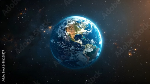 Stunning View of Earth from Space with Glowing Atmosphere and Starry Background