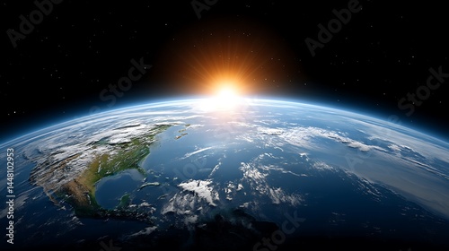 Stunning View of Earth from Space with Sunrise Over Horizon and Clear Blue Sky