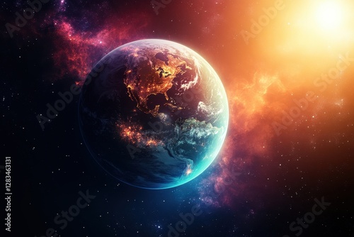 Stunning view of Earth surrounded by vibrant cosmic colors and distant stars