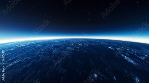 Stunning view of Earth's curvature from space, showing ocean and twilight sky.
