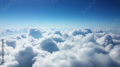 Stunning View of Fluffy Clouds and Clear Blue Sky from Above