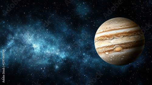 stunning view of Jupiter in vastness of space, showcasing its bands and storms