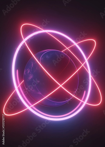 stunning visual representation of planet surrounded by glowing rings, symbolizing concept of nine celestial bodies in vibrant cosmic dance. colors create captivating atmosphere
