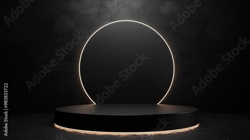 Stylish 3D podium with a minimalist aesthetic clean background soft ambient lighting and geometric shapes creating a modern environment for product presentation