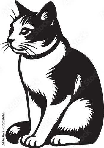 Stylish black and white cat silhouette, Minimal pet cat design in vector style