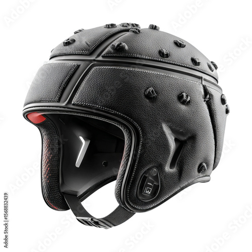 Stylish Black Sports Helmet with Unique Texture on Transparent Background