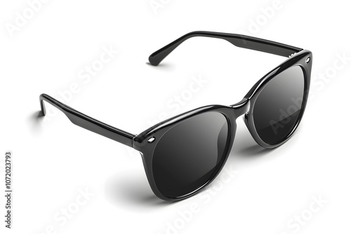 Stylish black sunglasses with sleek reflective lenses and metallic details on white background