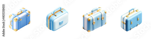 Stylish Blue Suitcases Set Perfect for Travel and Vacation Branding Four Unique Designs in 3D Isometric View