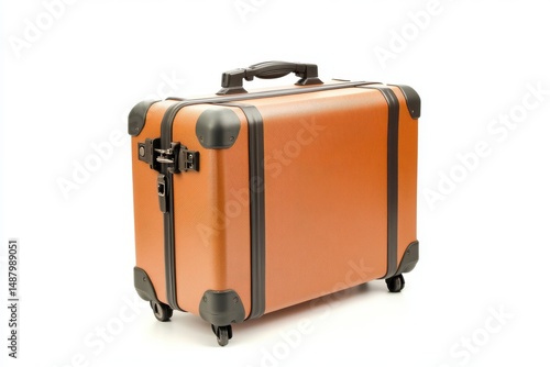 Stylish brown suitcase with wheels for travel and business trips. use cases: product catalog, travel blogs, luggage store.