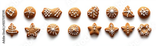 Stylish Christmas gingerbread cookies isolated on a white background. gingerbread cookies in various shapes, including Christmas trees, snowflakes, and human figures
