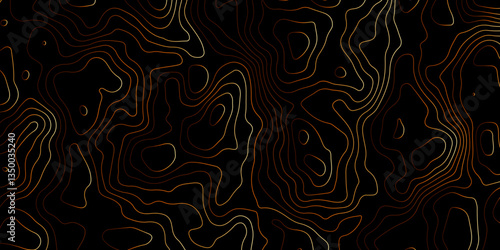 Stylish Dark Terrain Mapping Wavy Line Contour Background. Flowing Contour Lines on Black Modern Topo Aesthetic