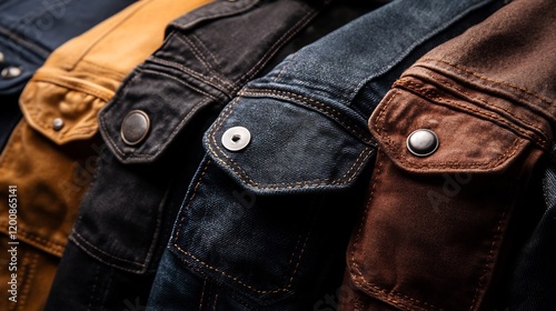 Stylish Denim Jackets Collection: A Close-Up Look at Diverse Colors and Textures
