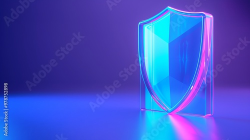 Stylish digital shield with glowing neon colors, symbolizing protection and security in a modern design.