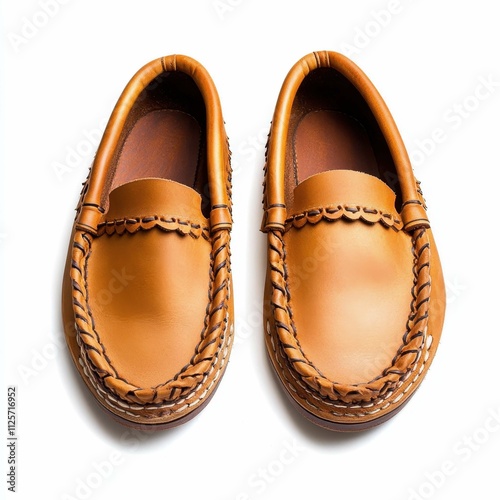 Stylish leather loafers in a warm brown color, showcasing intricate braided detailing on the edges, perfect for both casual and formal occasions, isolated on a white background.