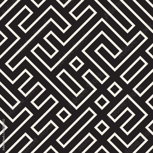Stylish lines lattice. Ethnic monochrome texture. Abstract geometric background design. Vector seamless pattern.