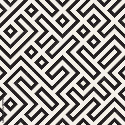 Stylish lines lattice. Ethnic monochrome texture. Abstract geometric background design. Vector seamless pattern.