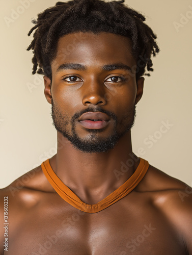 Stylish Male Fitness Model: Athletic, Confident, and Serene in Studio Portrait