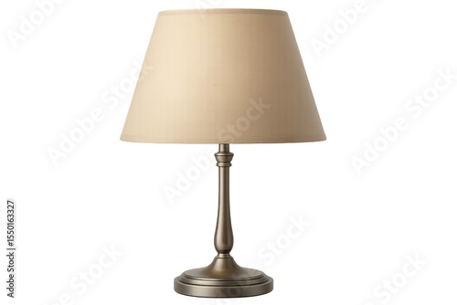 Stylish metal table lamp with a beige shade, isolated on a transparent background, perfect for interior design projects