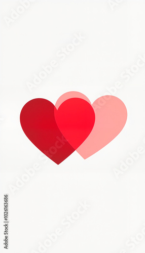 Stylish overlapping hearts in red and pink colors on a clean white background for Valentine's Day
