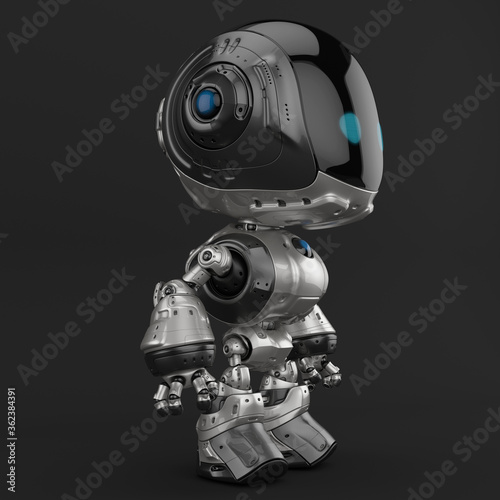 Stylish robotic character - silver colored charming fun bot, 3d rendering in profile