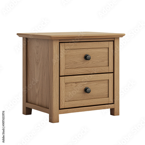 Stylish wooden nightstand featuring two spacious drawers, perfect for organizing essentials. Its natural oak finish adds warmth to any bedroom decor, creating cozy atmosphere