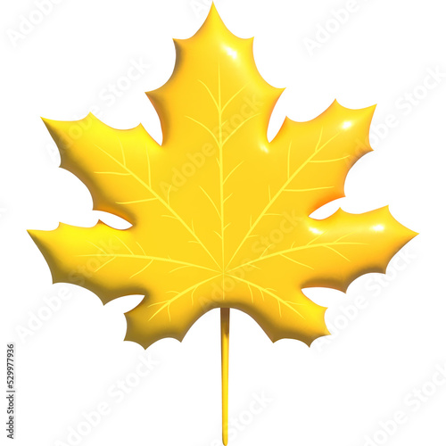 Stylized 3D autumn yellow maple leaf. Vector illustration