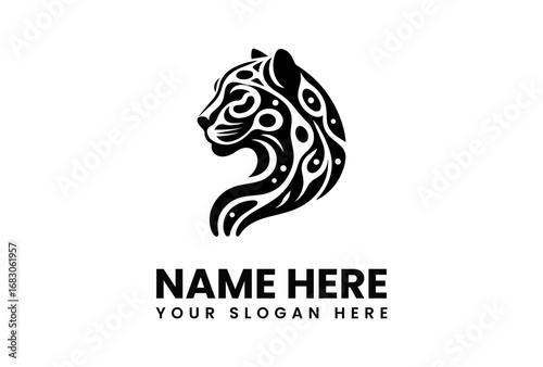 Stylized Black Jaguar Head Profile with Tribal Pattern Design Elements.