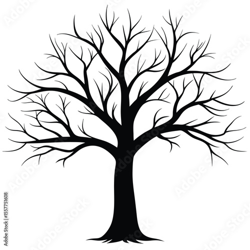 Stylized black silhouette of a bare tree with intricate branches on white background