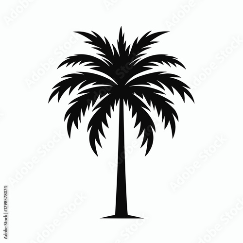 Stylized black silhouette of a palm tree on a white background