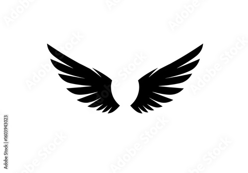 Stylized Black Wings Spread Symmetrically on White Background – Symbol of Flight, Power, and Elegance