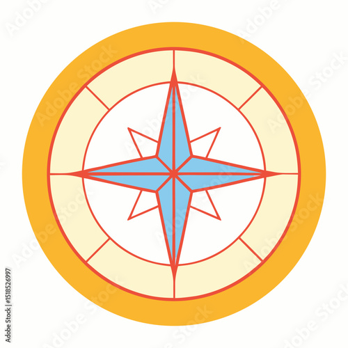 Stylized Compass Rose Illustration With Geometric Shapes And Retro Color Palette