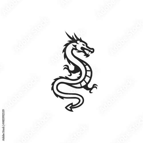 Stylized dragon head silhouette against a white backdrop in the lower right corner