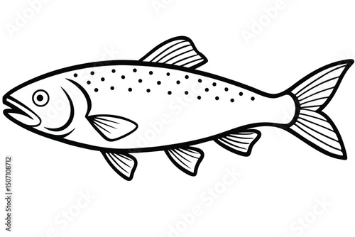 Stylized Fish Illustration Featuring Distinctive Fins, Speckled Pattern, and Bold Outline Design