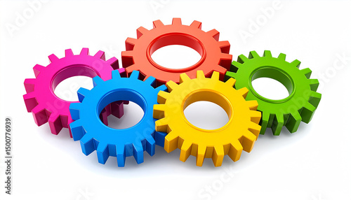 Stylized illustration of gears interlocking, representing teamwork and problem-solving