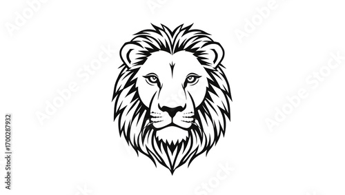 Stylized lion head front view icon. A powerful symbol of strength and courage for a mascot or emblem, isolated on a white background. 1