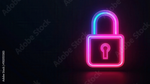 Stylized lock icon glowing in neon colors against dark background, symbolizing security and protection