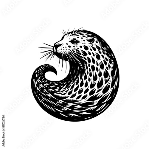 Stylized otter illustration in a circular design
